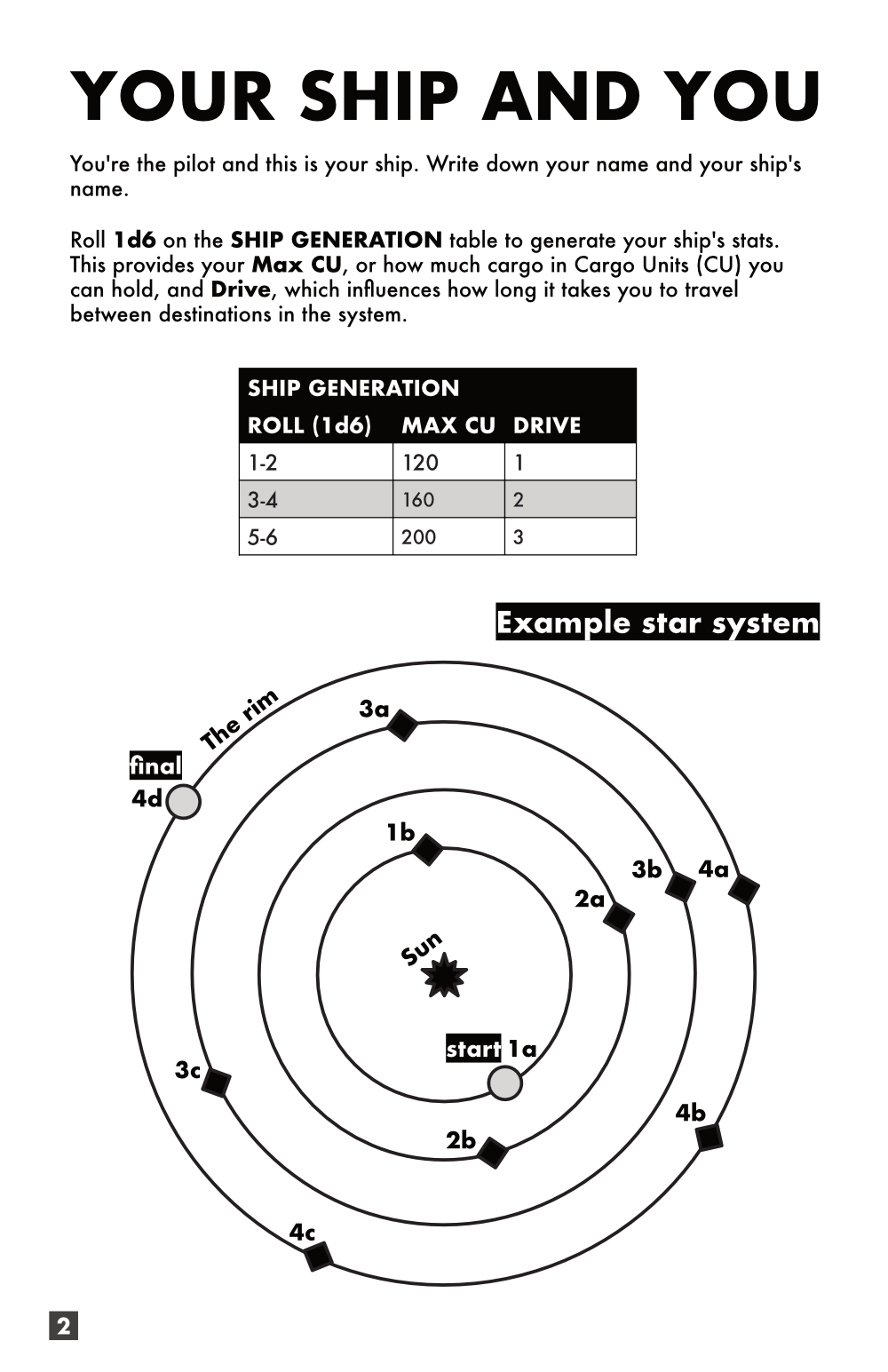 You'll generate a star system, generate a cargo contract, and generate encounters to buy and sell goods (aka, the HAULCRAWL). Your goal is simple — finish the job on time, with as many credits in your pocket as possible.